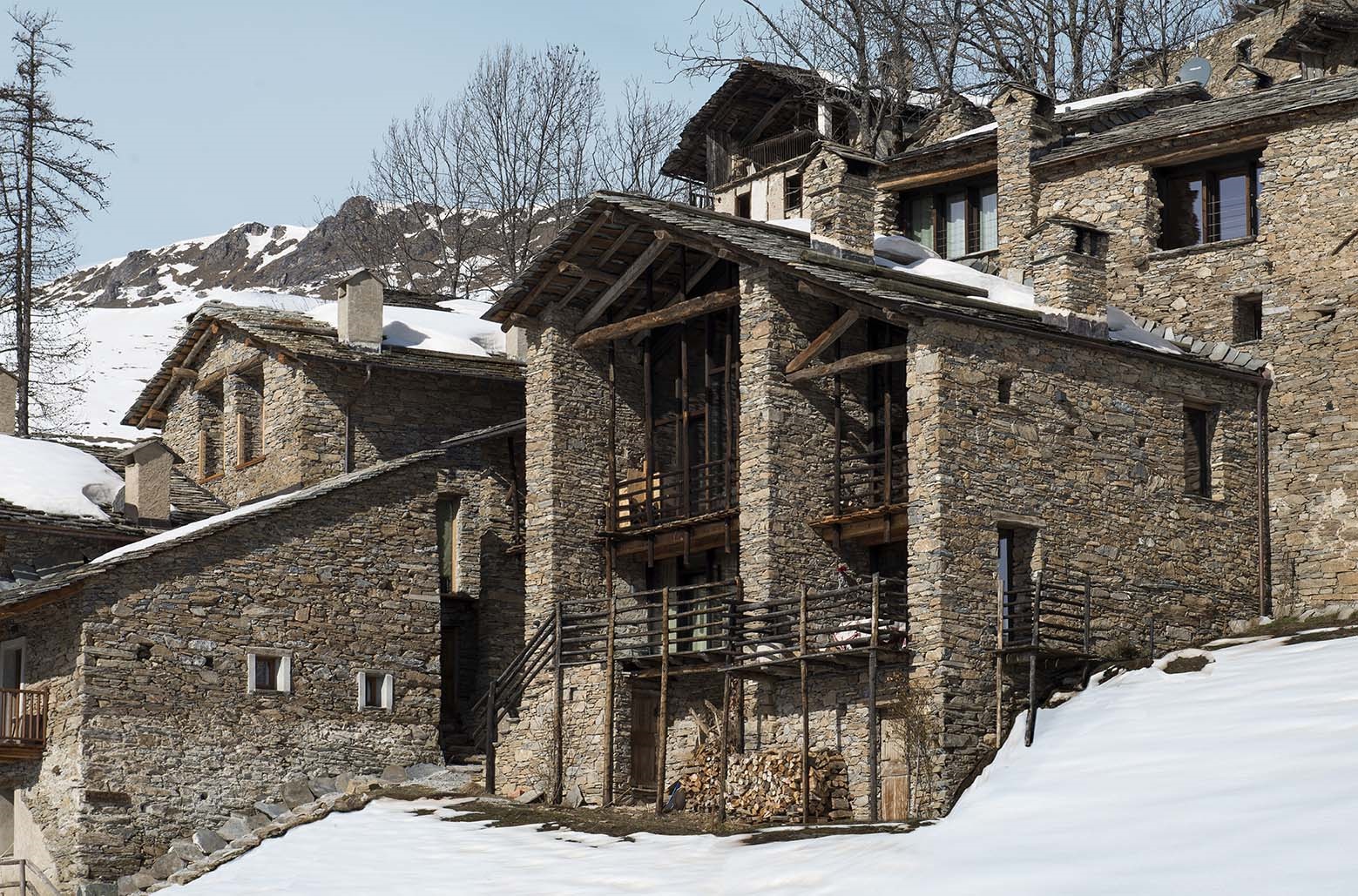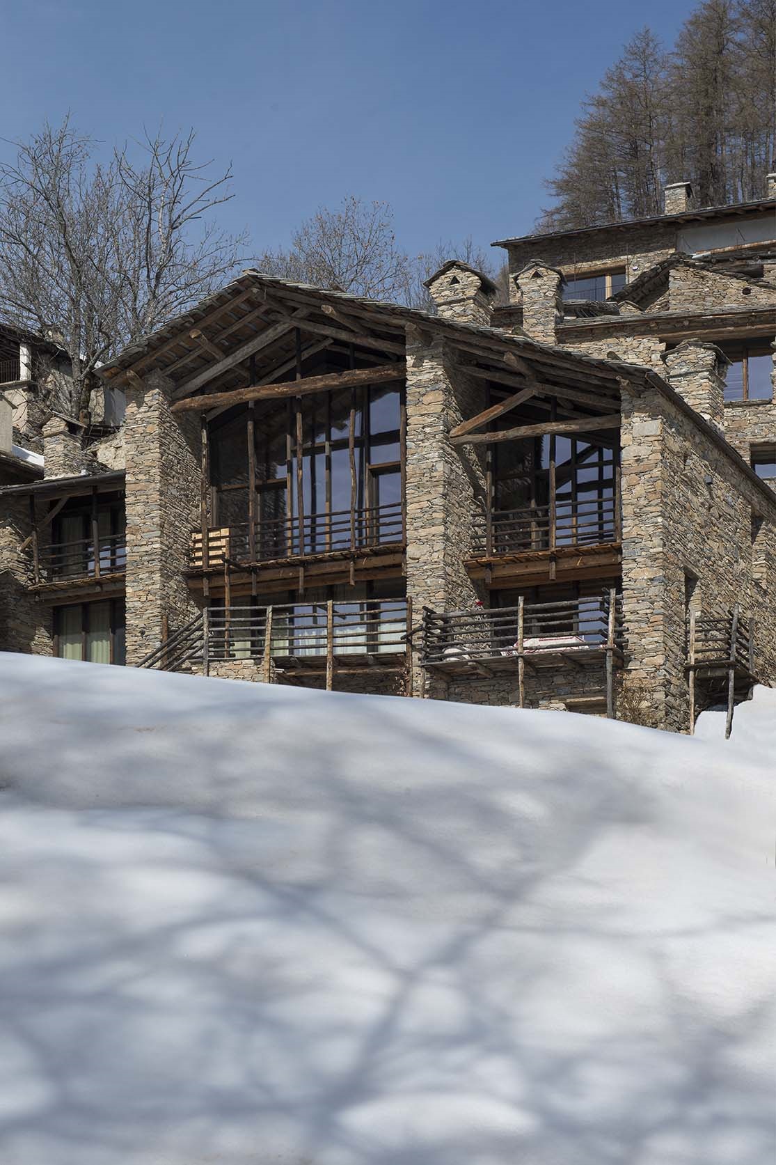 Das Schicksal von Campofei, einem Weiler in der Gemeinde Castelmagno im oberen Grana-Tal, änderte sich, als vier Weinunternehmer 2009 beschlossen, in seine Wiederbelebung zu investieren. Die Wirtschaft des Dorfes wurde mit Kleinstbetrieben wiederbelebt, die mit der Produktion des berühmten Castelmagno-Käses und der Herstellung von aromatischen Kräutern verbunden sind und Beschäftigungsmöglichkeiten für junge Menschen bieten. Das Ziel des Projekts war es, die traditionelle Architektur und die Materialien beizubehalten und sie mit einigen zeitgenössischen Elementen zu kombinieren, um die Zeichen der Zeit nicht zu verändern. Diese Wahl ermöglichte es, Räume zu erhalten, die mit den heutigen Wohn- und Regelungsanforderungen in Einklang stehen und gleichzeitig die Spuren der Erinnerung sichtbar lassen, die das kleine Dorf zu einem Ort der Identität machen. Der Wunsch, recycelte Materialien zu verwenden, führte auch zu einem Projekt, das in Bezug auf Energie und Umwelt nachhaltig ist.