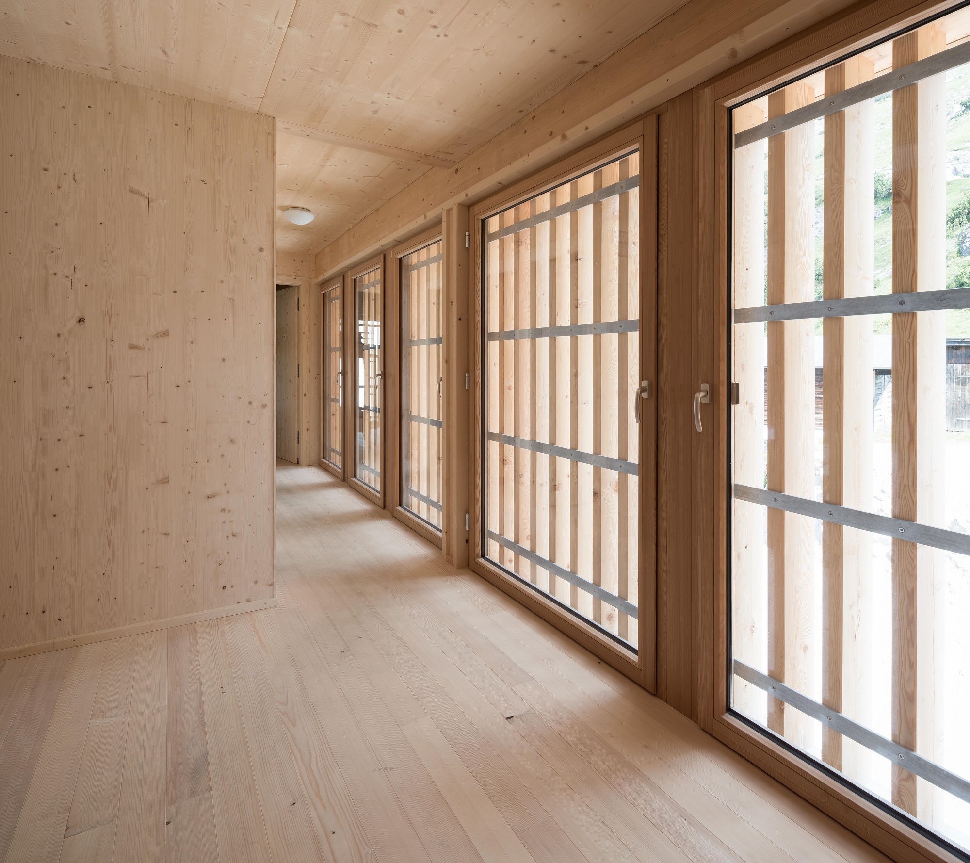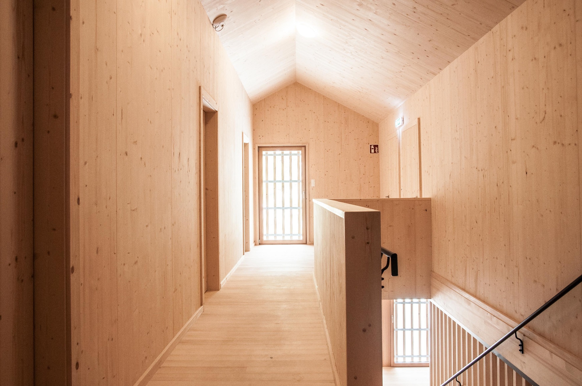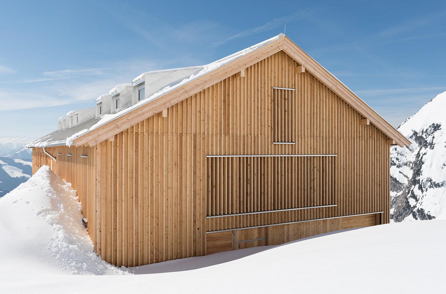 Diese Hüttenerweiterung wird hoffentlich oft übersehen. Dann hätte sie ihr Ziel erreicht, unauffällig und selbstverständlich zu sein. Der kompakte Anbau ersetzt zwei andere Hütten, die in einem Lawinengebiet standen. Er führt alle vorgegebenen Strukturen der 100 Jahre alten Urhütte weiter und zeigt dennoch, dass er ein Ergebnis unserer Zeit ist. Das Gebäude ist fast ausschließlich aus (Massiv-) Holz gefertigt. Die Fassade ist wie im Bestand holzverkleidet, aber so dass alt und neu erkennbar bleiben. Die kleinen Fenster des Bestandes sind im Prinzip weitergeführt, nun allerdings als raumhohe Verglasungen für helle Zimmer. Die Betten und die Einrichtung des neuen Seminarraums wurden aus massiver Lärche entworfen und (wie alle anderen Bauteile auch) von einem lokalen Betrieb gefertigt. Durch Verzicht auf Komfort konnte das Gebäude einfach und fast technikfrei ausgeführt werden. So sollen für weitere 100 Jahre andere an diesem wunderbaren Ort Vortritt haben: die Berge des Kaisergebirges.