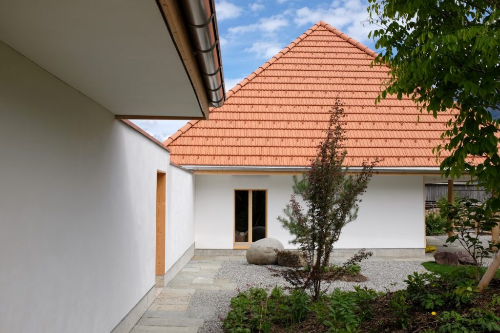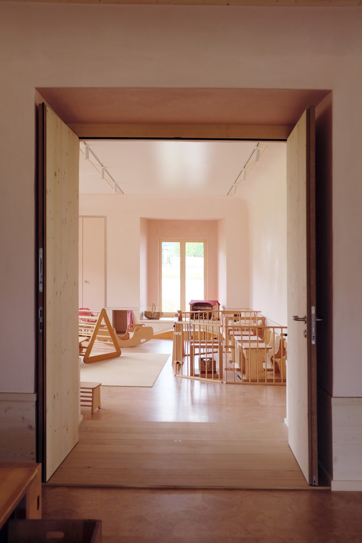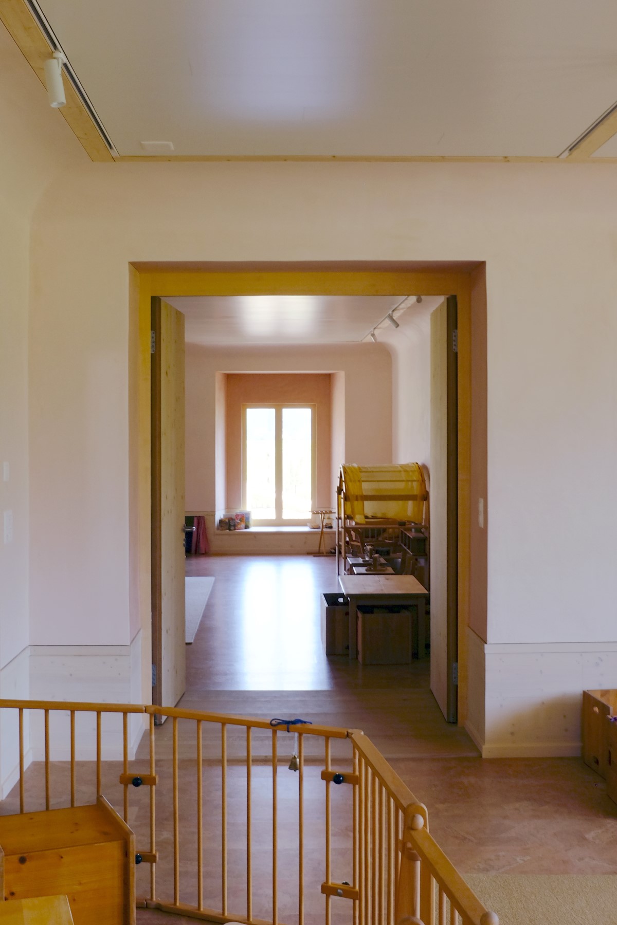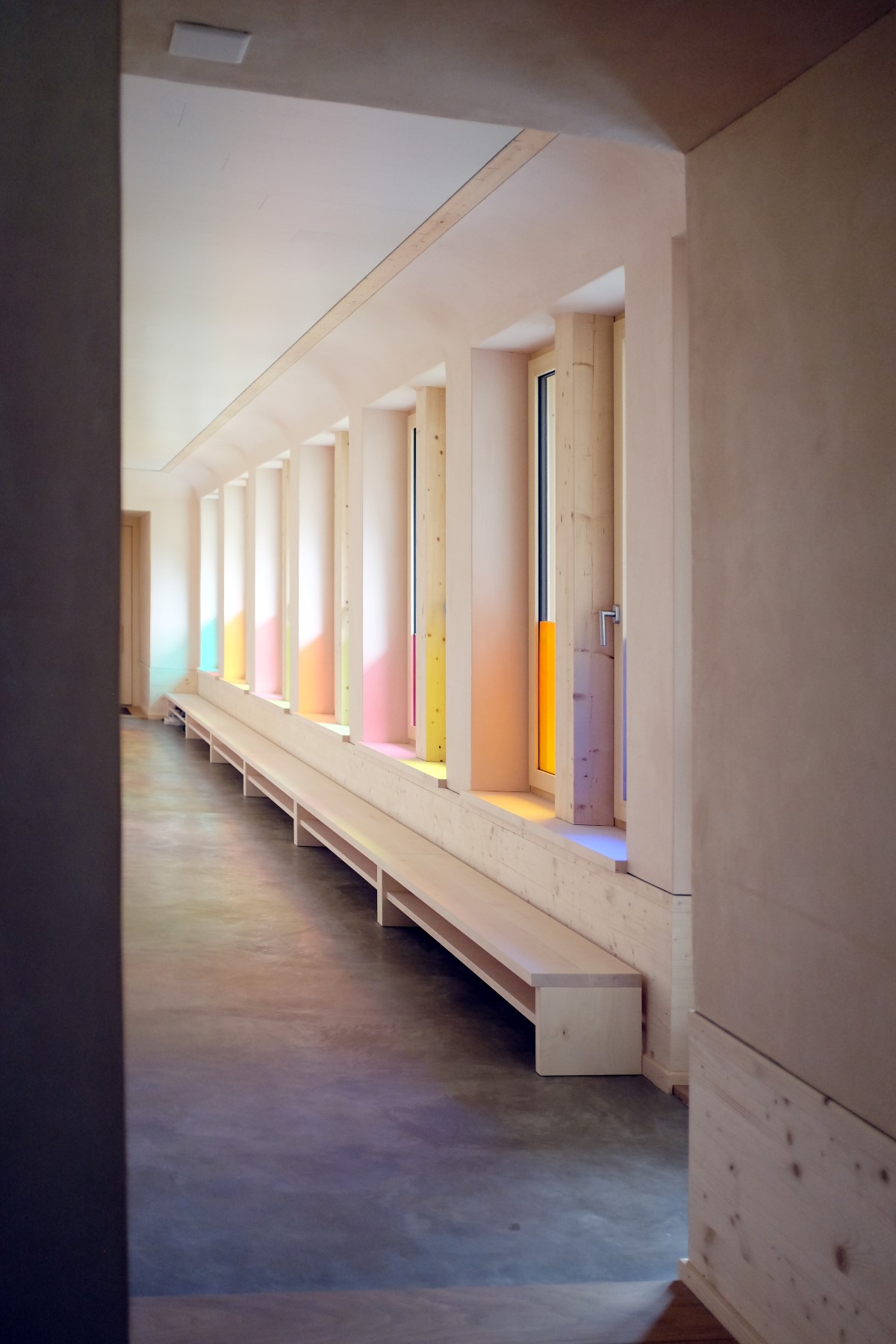 La casa per bambini “Nido di cicogna” è il risultato di decenni di attenta osservazione della natura del bambino. La pedagogia e l’architettura si concentrano sull’originario. Occupandosi della percezione dei bambini, è inevitabile confrontarsi con l’architettura ecologica, poiché i bambini reagiscono in modo molto sensibile all’ambiente. Il risultato sono due case con pareti a elementi modulari in paglia, legno e argilla, che racchiudono un giardino selvaggio. Questa costruzione è espressione dell’originario in sé, ma diventa attuale attraverso le modalità con cui viene prodotta.