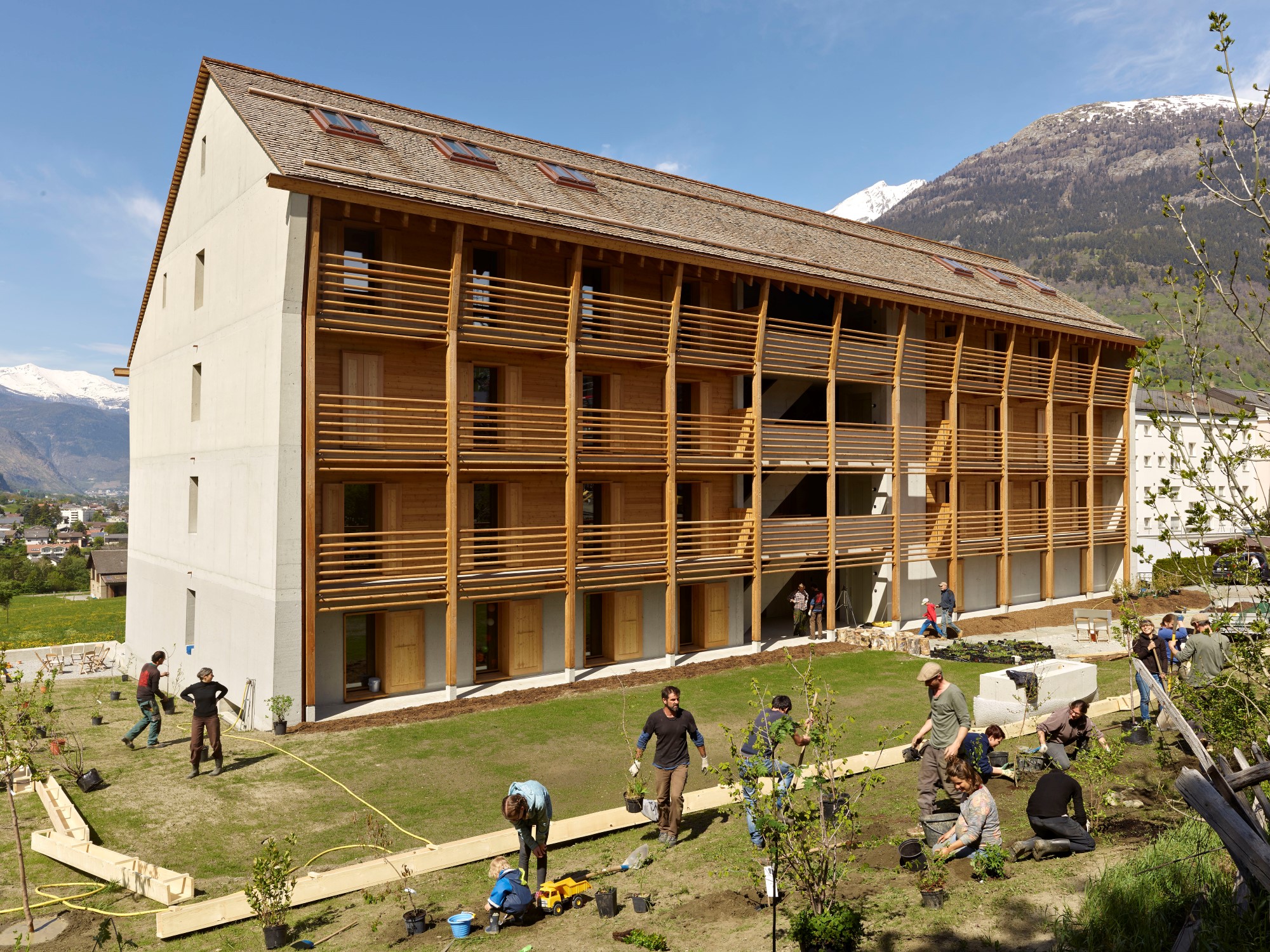 «Su un appezzamento di terreno del loro monastero di Sant’Orsola, situato ai margini del centro storico, le suore hanno fatto costruire una casa modello dal punto di vista sociale ed ecologico, che instaura un dialogo disinvolto con una molteplicità di stili architettonici. Si può ben dire che gli architetti abbiano superato le aspettative delle suore. A partire dalla concezione al dettaglio dell’esecuzione della casa in legno tra muri di cemento, dalle planimetrie al giardino, dalle camere in legno agli arredi artigianali – il cantone del Vallese ha ottenuto ciò che in precedenza non aveva pressoché mai avuto: un edificio bello e funzionale di buona architettura contemporanea».