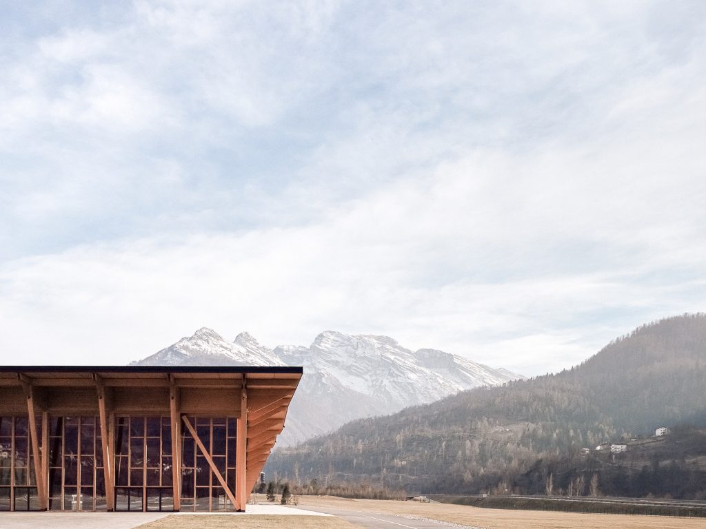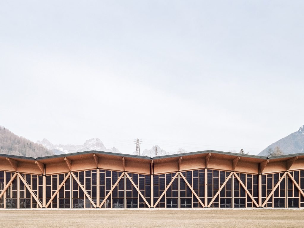 Das neue Kongresszentrum Agordo ist eine Anlage am Rande der städtischen Siedlung, in einem Gebiet, das strategisch an die öffentlichen Verkehrsmittel angeschlossen ist und grosses Potenzial birgt. Die Struktur wird durch Details, die die Dimension und die Ausdrucksstärke des Holzes offenbart, freigelegt und zum hervorgehoben. Die Stärke der strukturellen Konzeption des Gebäudes bezieht sich auf die Schönheit der Dolomitenlandschaft und wird zum Hauptthema; die Holzstrukturen folgen einander zwischen dem Dach und der Fassade in einer kontinuierlichen und ausgewogenen Weise. Der strukturelle Rahmen des Gebäudes hat die Fähigkeit, Raum zu werden. Die Entscheidung, die für ländliche Bauten in den Agordo-Tälern typischen Formenund formalen Leitgedanken zu verarbeiten, Holz als nachhaltiges Material im Einklang mit der alpinen Bautradition zu verwenden und den Gebäudeteil durch gebrochene Linien zu komponieren, die die Natürlichkeit der Topographie des Umfeldesaufgreifen, sind die Dreh- und Angelpunkte, durch die der gestalterische Weg beschritten wurde.
