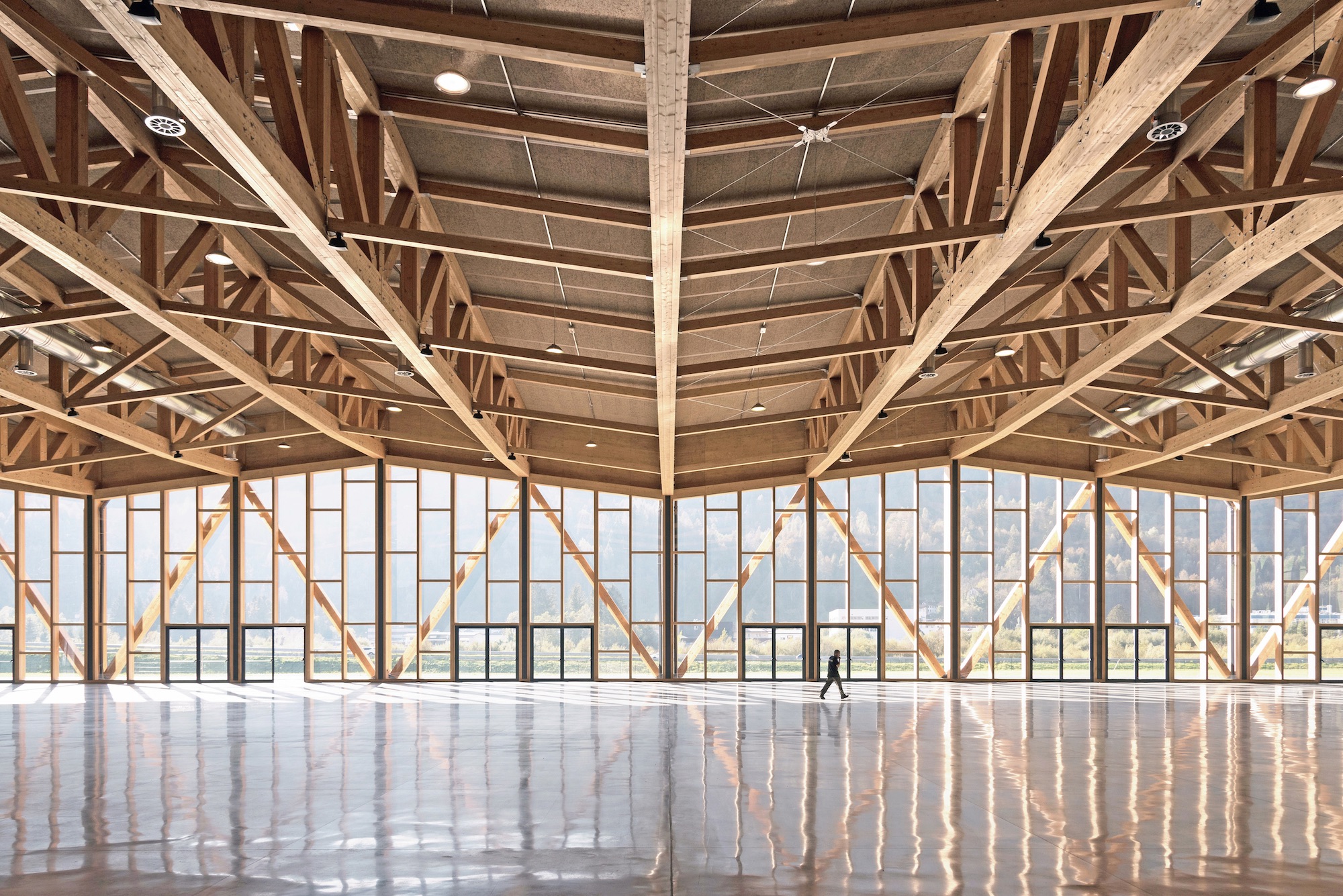 Aus den 28 zur zweiten Runde eingeladenen Bauten hat das Publikum seinen Favoriten bestimmt: das Kongresszentrum des Brillenherstellers Luxottica. Auch die Jury war von diesem Holzbau angetan: «Hier entsteht Schönheit allein aus dem Tragwerk. Auf einer Wiese zwischen Dorf und Umfahrungsstrasse ist ein aufsehenerregender, wohlgeratener Ort entstanden. Der grosse Konzern braucht sein Zentrum an wenigen Tagen für sich selber und stellt es sonst der Allgemeinheit als Messe-, Markt- und Konzertort zur Verfügung.»