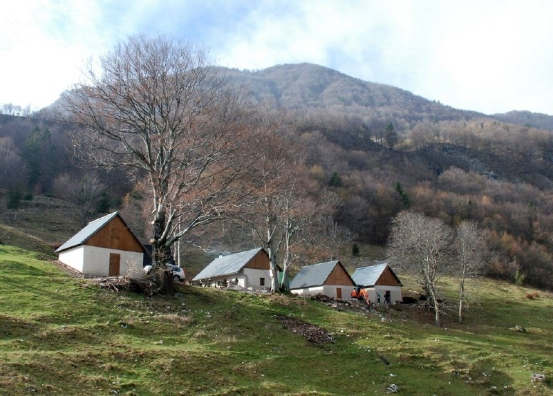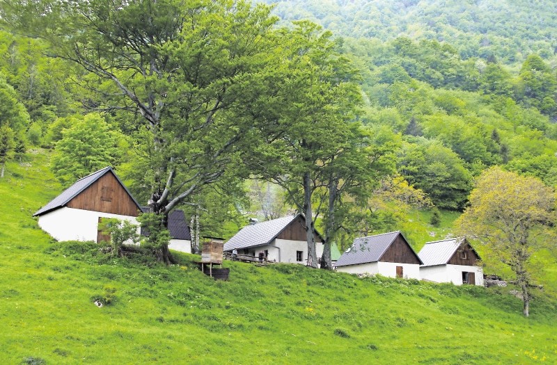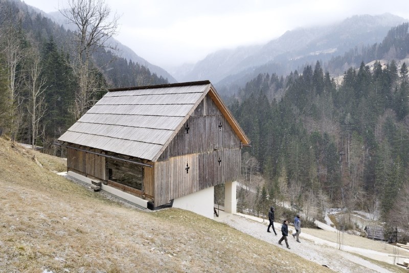 «Die Zwischenalp Laška liegt auf 1000 m ü. M. zwischen dem Tal und der Alp in den slowenischen Bergen fünfzig Kilometer westlich von Ljubljana. Fünf einfache Ställe beherbergten früher unter dem Dach die Hirten, im Erdgeschoss schliefen die Kühe. Für die moderne Landwirtschaft haben solche Maiensässe ausgedient. Doch wird die Wiese dort oben nicht bewirtschaftet, verwaldet sie. Also haben sich fünf Bauernfamilien – fest an die Vergangenheit als Zukunft glaubend – daran gemacht, die Alp wieder zu nutzen. Sie sanierten die maroden Häuser mit traditionellen Materialien: Kalkputz, Holz, Blechdach. Auf moderne Anbauten verzichtet der Umbau, so wirkt das Ensemble heute noch harmonisch. Die einfache Renovation beeindruckt. Sie fragt: Was brauchen wir wirklich um zu leben? Und: Wohin führt die hochtechnisierte Landwirtschaft? Das Projekt ist ein romantischer, aber augenöffnender Gegenentwurf. Es zeigt, wie in den Alpen nach traditionellem Vorbild wieder Leben einkehren kann, und setzt damit ein Zeichen für Tolmin, das 2016 Alpenstadt ist. Zudem ist es eine Chance für eine sanfte touristische Nutzung. Gäste erhalten einen Einblick in die Landwirtschaft, wie sie vor Hunderten von Jahren betrieben wurde: Die Milch blubbert über dem offenen Feuer, darüber verrussen die Wände vom Rauch. Wie früher eben.»