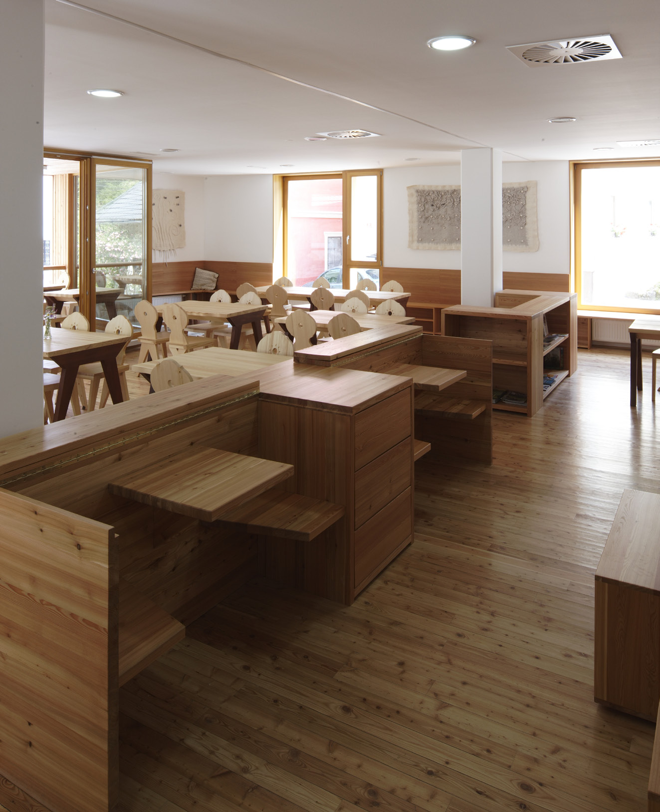 Center za trajnostni razvoj Rinka spodbuja trženje domačih izdelkov in obvešča javnost o aktualnih trajno-stnih projektih, ki jih izvajajo v regiji, s tem pa povečuje privlačnost Solčavskega. V centru je turistično-infor-macijska točka, svoje prostore ima Občina Solčava, urejeni pa so tudi skupni prostori, namenjeni za izvaja-nje različnih projektov. Dogajanje v notranjosti Centra Rinka je odraz regionalnosti in le-to tudi spodbuja, kar je ključno sporočilo, ki ga posreduje tudi arhitektura stavbe. Ta se s svojo asimetrično zasnovo volu-mna lepo vključuje v podobo vasi. Glavna fasada je iz domačega macesnovega lesa, stranske fasade so ometane. Leseni fasadni plašč priča o zavezanosti trajnostni gradnji in sodobni arhitektu-ri. Vse to dokazuje, da ima projekt za Slovenijo pionirsko vlogo.