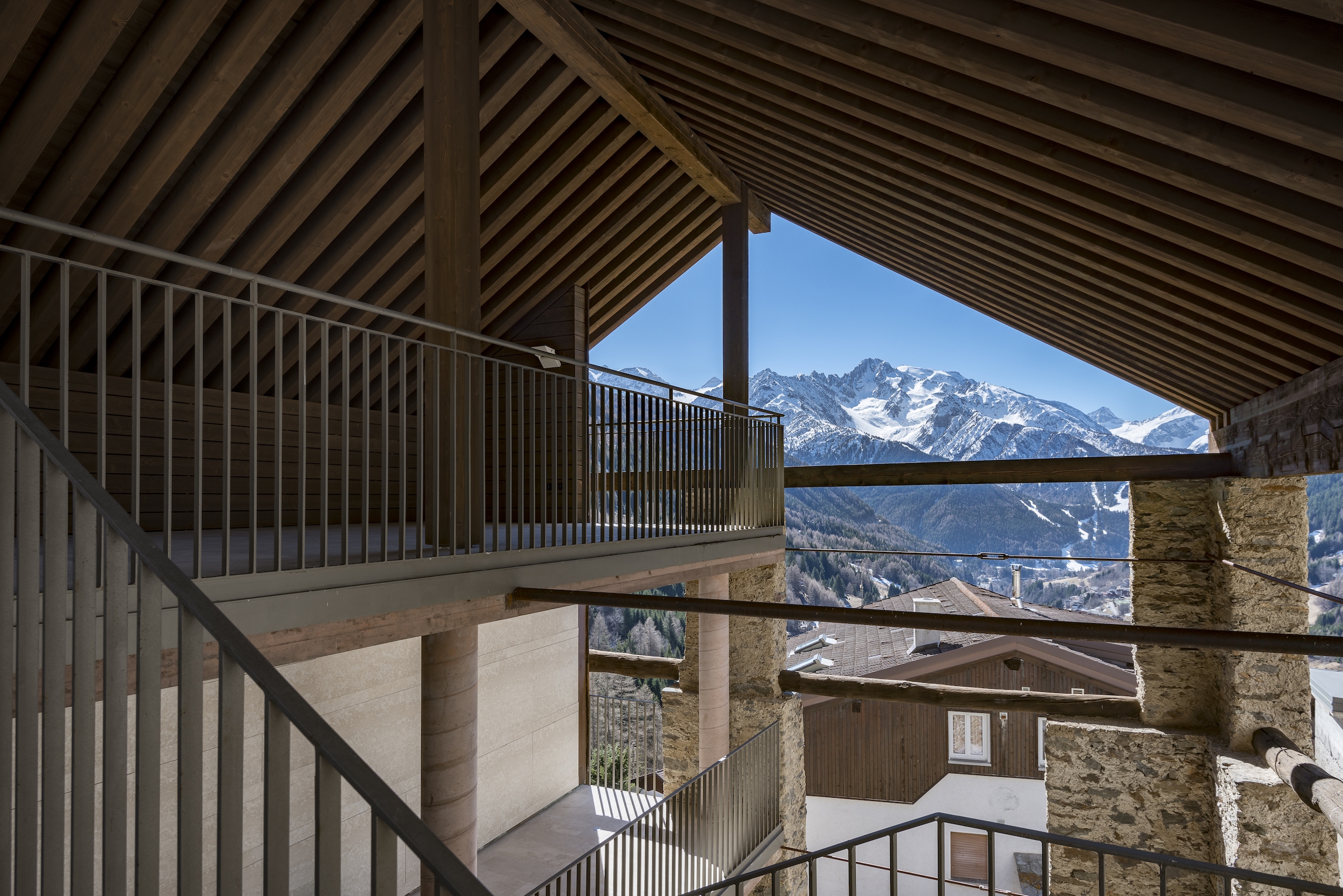 Italijanska vasica Pezzo v občini Ponte di Legno, ki se nahaja na območju alpskega Narodnega parka Stelvio, leži v pokrajini Lombardiji. Ob tamkajšnji cerkvi je dolgo propadal stari hlev, sicer zaščiten pod spomeniškim varstvom. Vaščanke in vaščani ga sedaj po prenovi uporabljajo kot mrliško vežico in poslovilno kapelo. Arhitekt Sergio Ghirardelli je kapelo v objekt vstavil kot nov prostor v obliki škatle. Ob rajnih je dovolj prostora tudi za žalujoče, ki se lahko dostojno poslovijo od pokojnih, saj se v osredju kapele nahaja odprt podest. Prostor je na voljo tudi za verske slovesnosti in zborovanja. Umestitev novega prostora je bila izvedena brez poseganja v obstoječo substanco starega objekta.