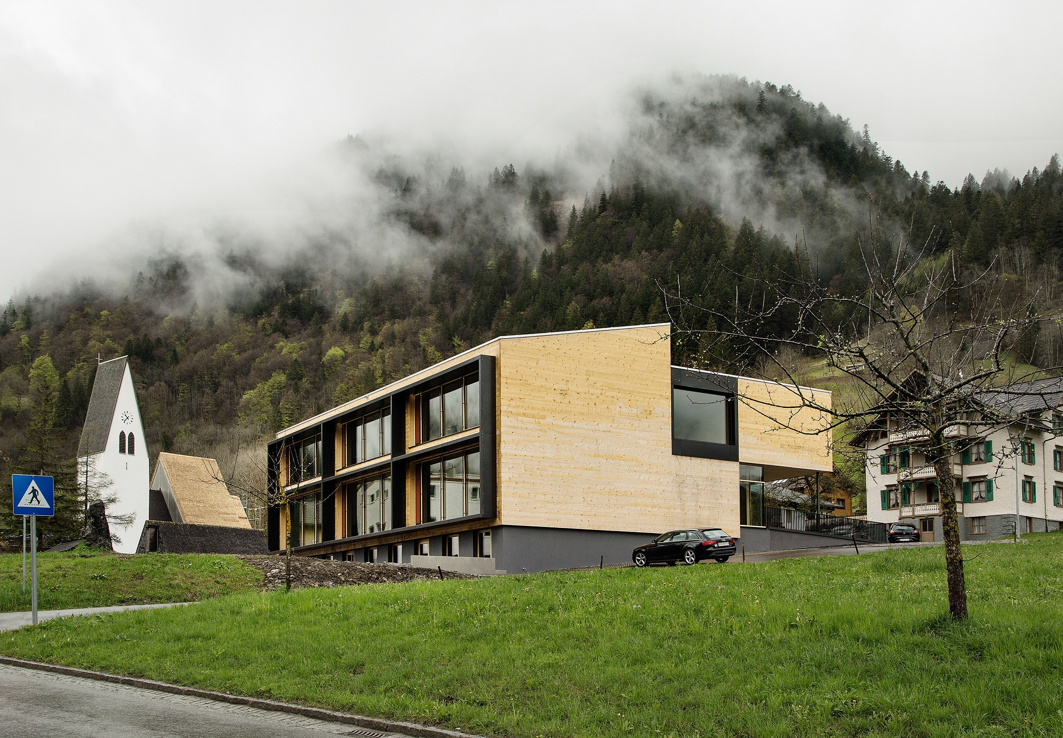 » Arhitekti so pri svojem delu upoštevali sleherno načelo trajnosti in virtuozno zaigrali po lokalnih notah. Šola združuje otroke, glasbenike in društva. Lesna konstrukcija stavi na regionalno gradbeno dejavnost in vestno nadaljuje z arhitekturno tradicijo kraja. Energijo črpa iz zemlje. Tako varčuje z viri, spodbuja trajnostno kulturo gradnje in bogati vaško skupnost. Od majhne porabe energije do izvrstnih prostorskih lastnosti … Brand je s to izjemno pridobitvijo postal srečališče v pravem pomenu besede – › zemmako ›. «
