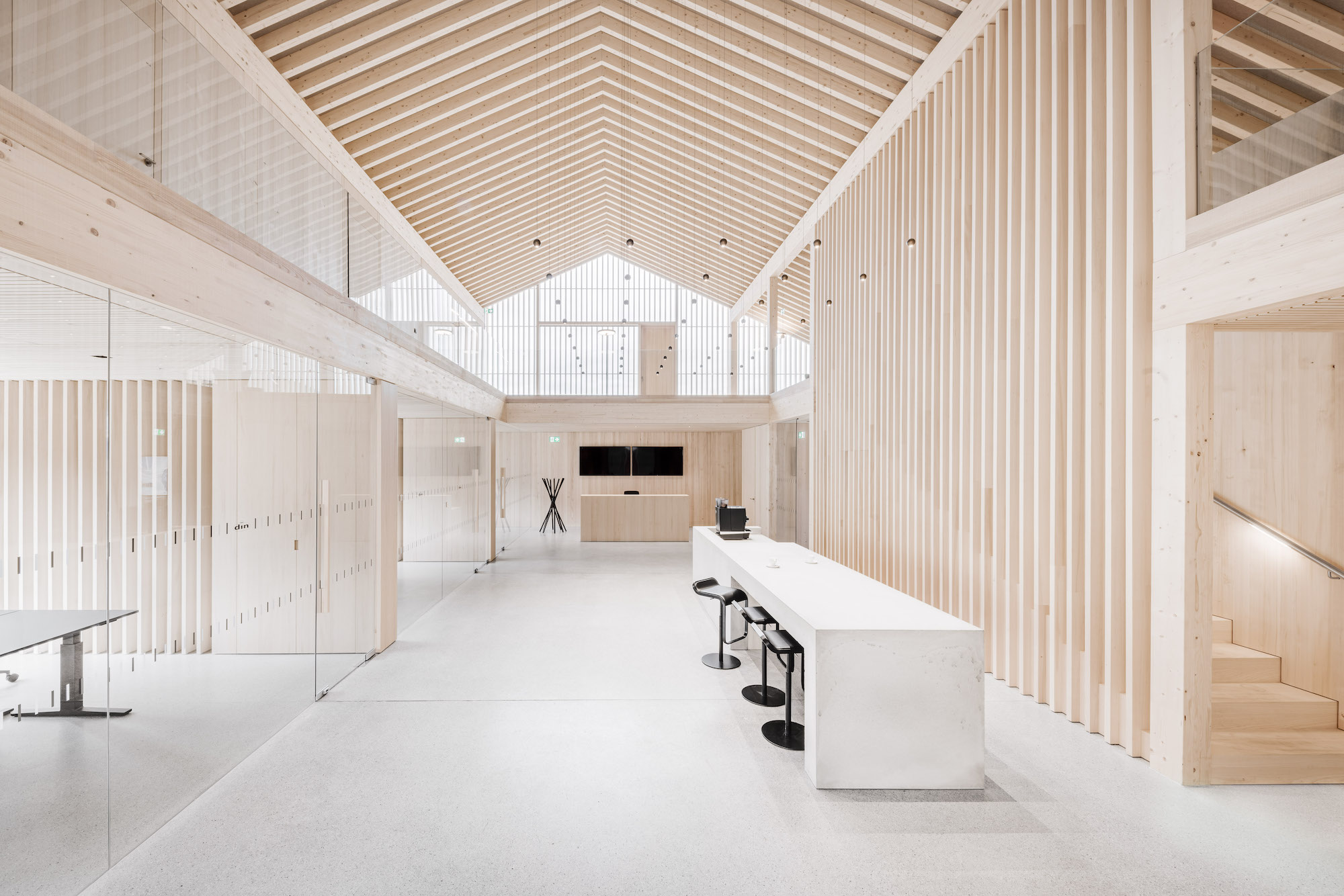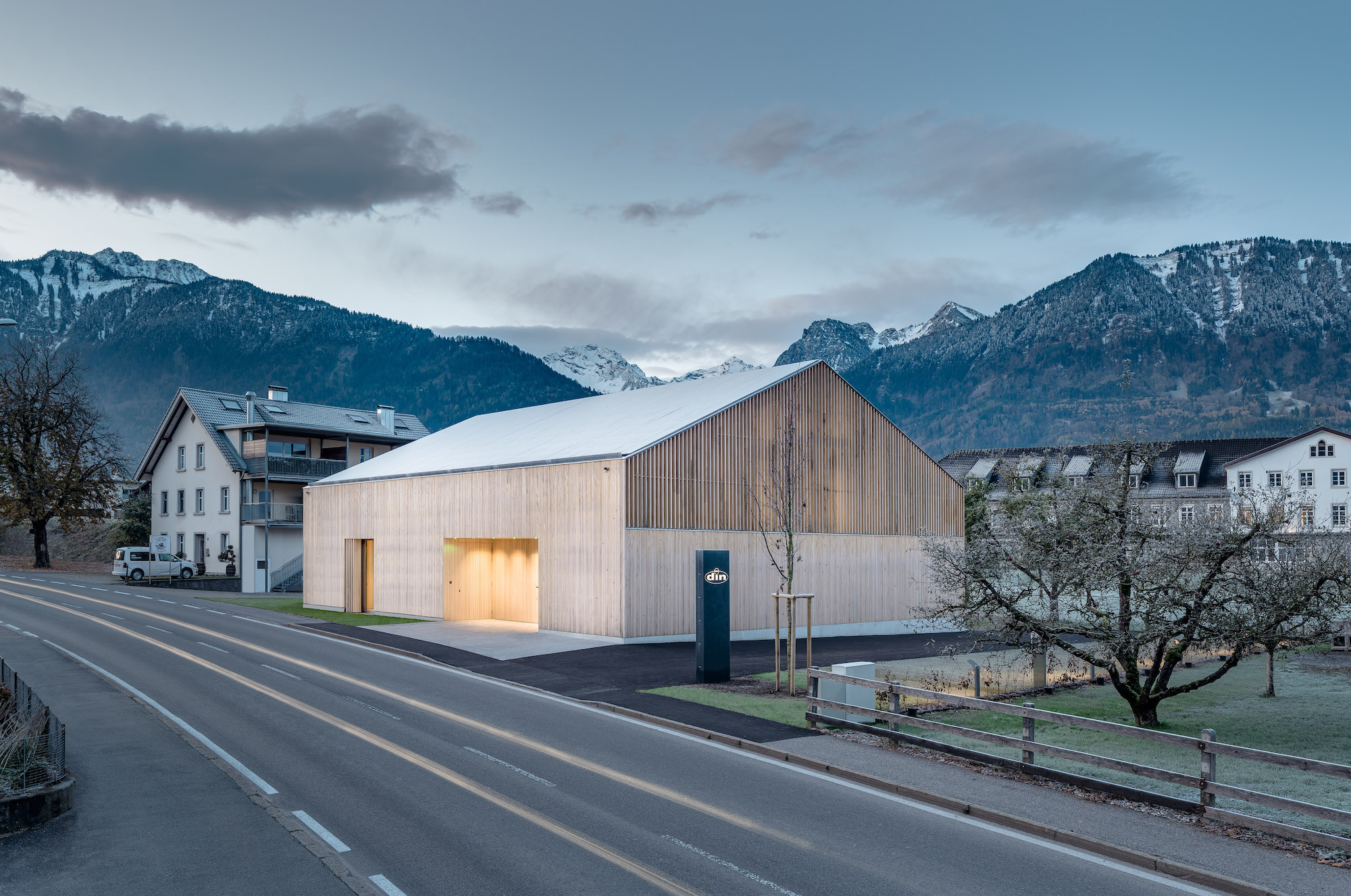 Kako lahko arhitektura na stičišču med urbanim območjem in podeželjem krepi značaj posameznega kraja in daje okolici dodano vrednost? Iskanje odgovora na to vprašanje je osrednja tema sicer manjšega objekta sedeža družbe DIN Sicherheitstechnik. Poslovna stavba se nadeja s kulturnega vidika odslikovati vrhunsko kakovost, ki je postala sinonim za proizvode podjetja. Ta zamisel se je v toku projekta prelevila v vodilno misel in sicer zasnovati objekt, ki bi z obliko, umestitvijo in ličnostjo olepševal kraj, izkazoval naklonjenost podjetja svojim zaposlenim in predstavljal »oglasni pano« za celoten nabor prodajnega sortimenta obenem. Končni »izdelek« temelji na ekološkem načinu gradnje, ki hodi z roko v roki s trajnostno rabo in uporabo s kulturnega, kakor tudi z gospodarskega, družbenega in okoljskega vidika.