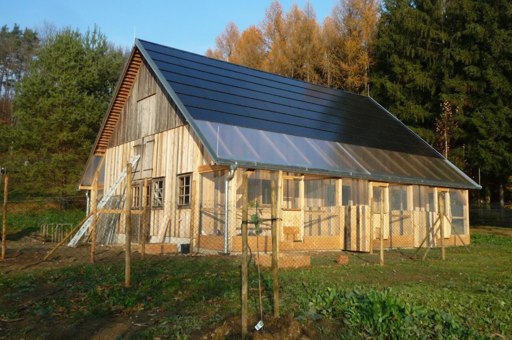 Der Hühnerstall ist ein Gebäude im künftigen landwirtschaftlichen Gehöft „VinziRast am Land“, ein neues Pionierprojekt, um obdachlosen Menschen mittels gemeinsamem Wohnen & Arbeiten wieder Boden unter die Füße zu bringen. Dafür haben viele Schüler*innen und Lehrer*innen der HTL Mödling, Angehörige der bestehenden VinziRast-Einrichtungen sowie Firmen und andere Freiwillige eine ehemalige Scheune im Kamptal ab – und im 80 km entfernten Wienerwald wieder aufgebaut. Unter dem Leitbild ALT + NEU = ZUKUNFT und durch das Zusammenhelfen der verschiedensten Menschen entwickelte sich das Gebäude derart „magnetisch“, dass immer mehr Unterstützung am Ende sogar eine der hervorragendsten PV-Anlagen am Süddach des Stalls ermöglicht hat. So versorgt der „neue Altbau“ oder „alte Neubau“ heute nicht nur die Felder der Permakultur-Landwirtschaft mit Hühnermist oder viele Menschen mit Bio-Eiern sondern auch noch als Kraftwerk das übrige Projekt mit Solarstrom.