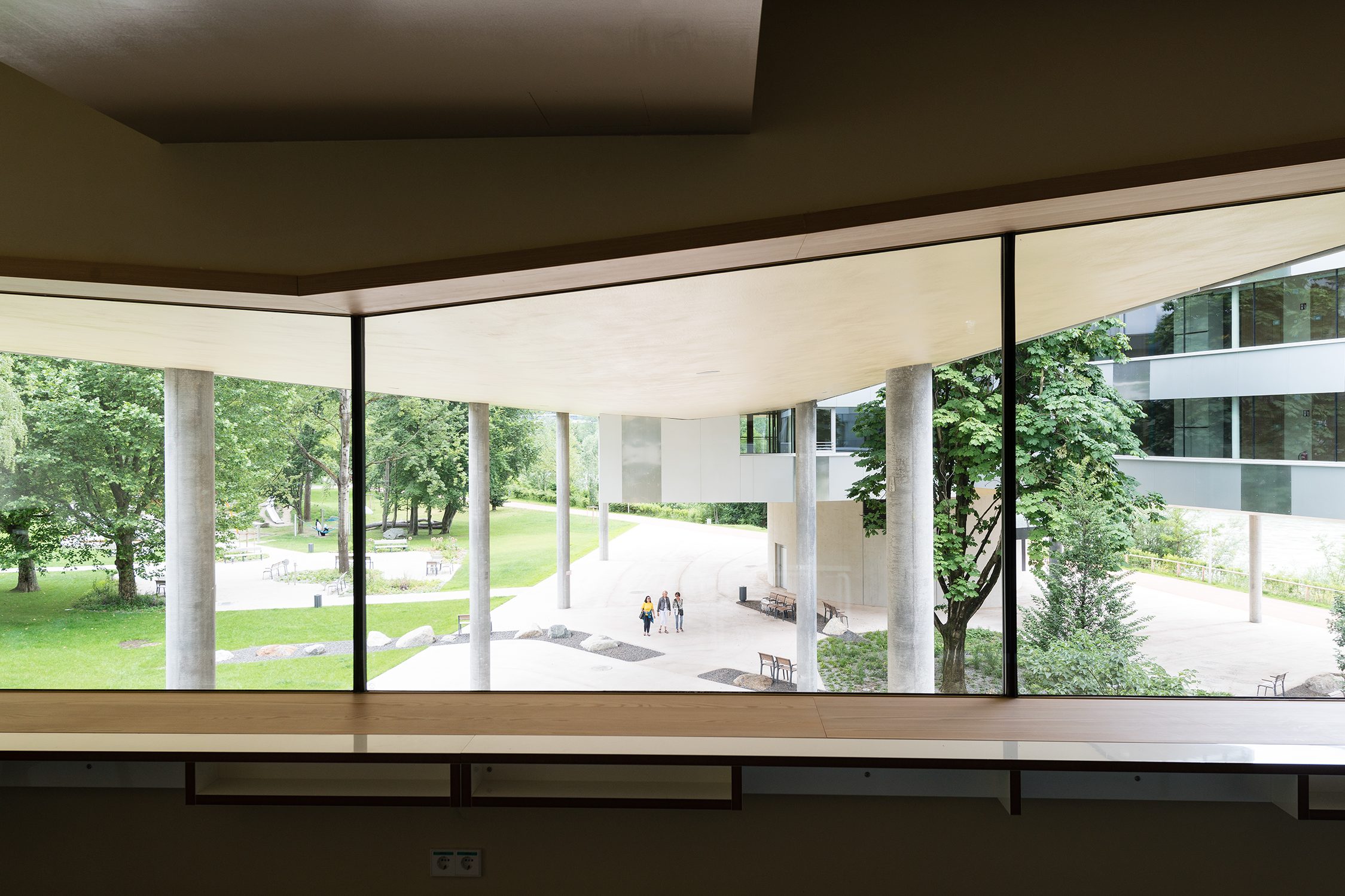 Das Alterswohnheim in Innsbruck überbaut einen Teil des geschützten Uferbands entlang des Inns. Um den Grünraum nicht zu zerschneiden, ist das Gebäude über dem Park zwei- und viergeschossig aufgeständert. Als Ausgleich wurde das dicht bewachsene Ufer freigelegt. Zudem sind das Café und die Kapelle der Öffentlichkeit zugänglich. Artec Architekten kombinieren die Betonkonstruktion mit einer Holzelementfassade, die sie mit Aluminiumplatten verkleiden. Das Haus nimmt 118 Einzelzimmer auf. Sitznischen vor den Zimmertüren sorgen für einen wohnlichen Massstab. Das Wohnheim ist das grösste Gebäude in Österreich mit Passivhaus-Zertifikat. Entsprechend tief sind die Energiewerte.